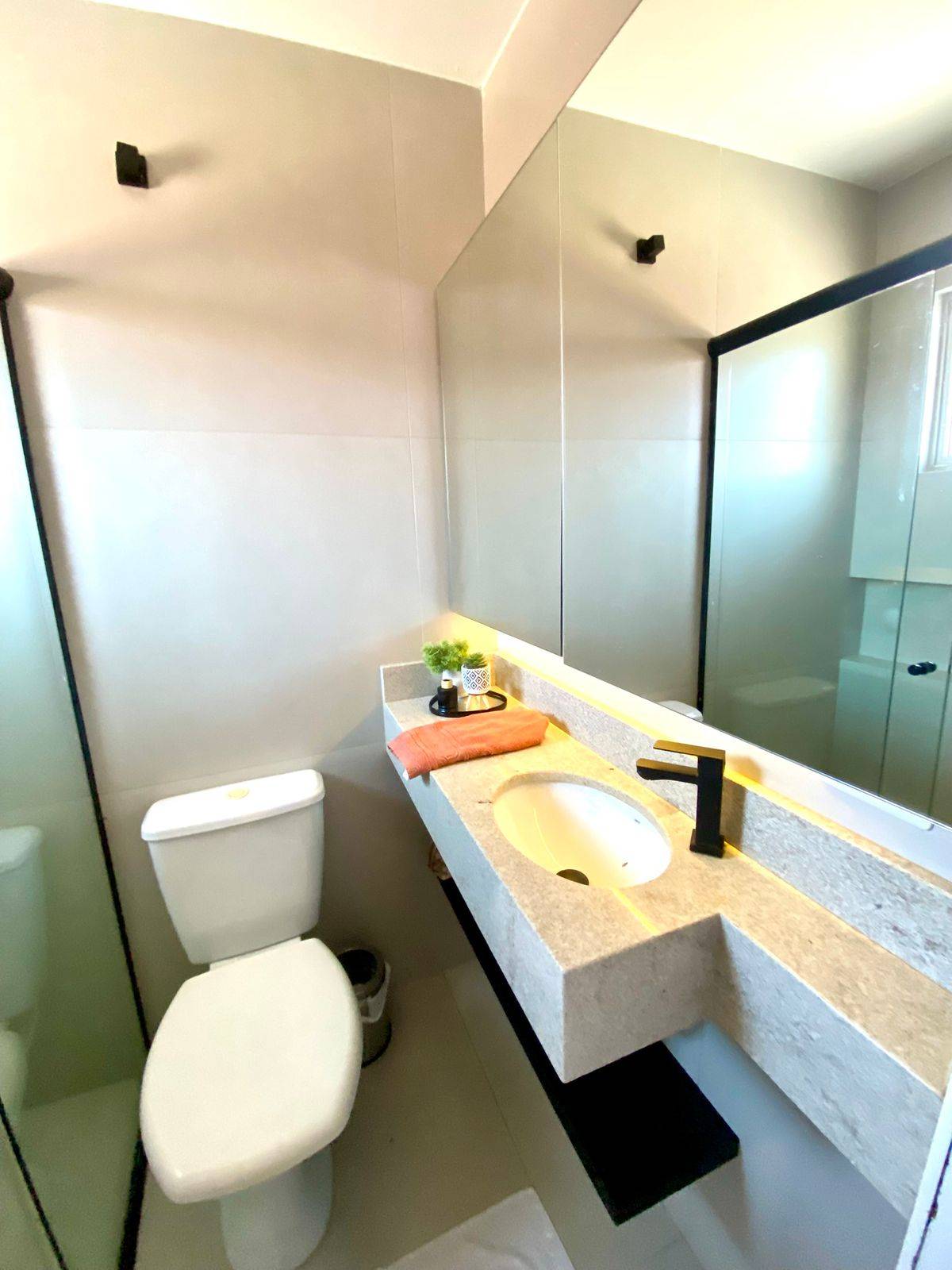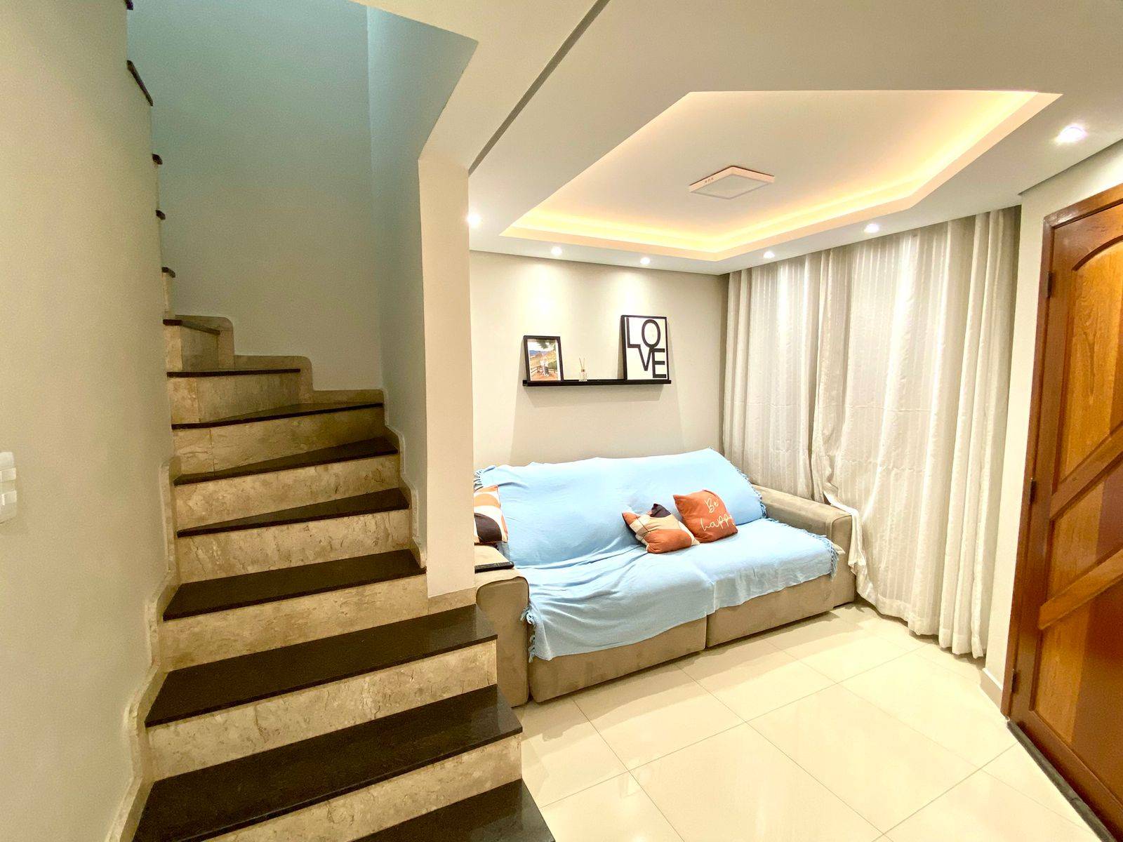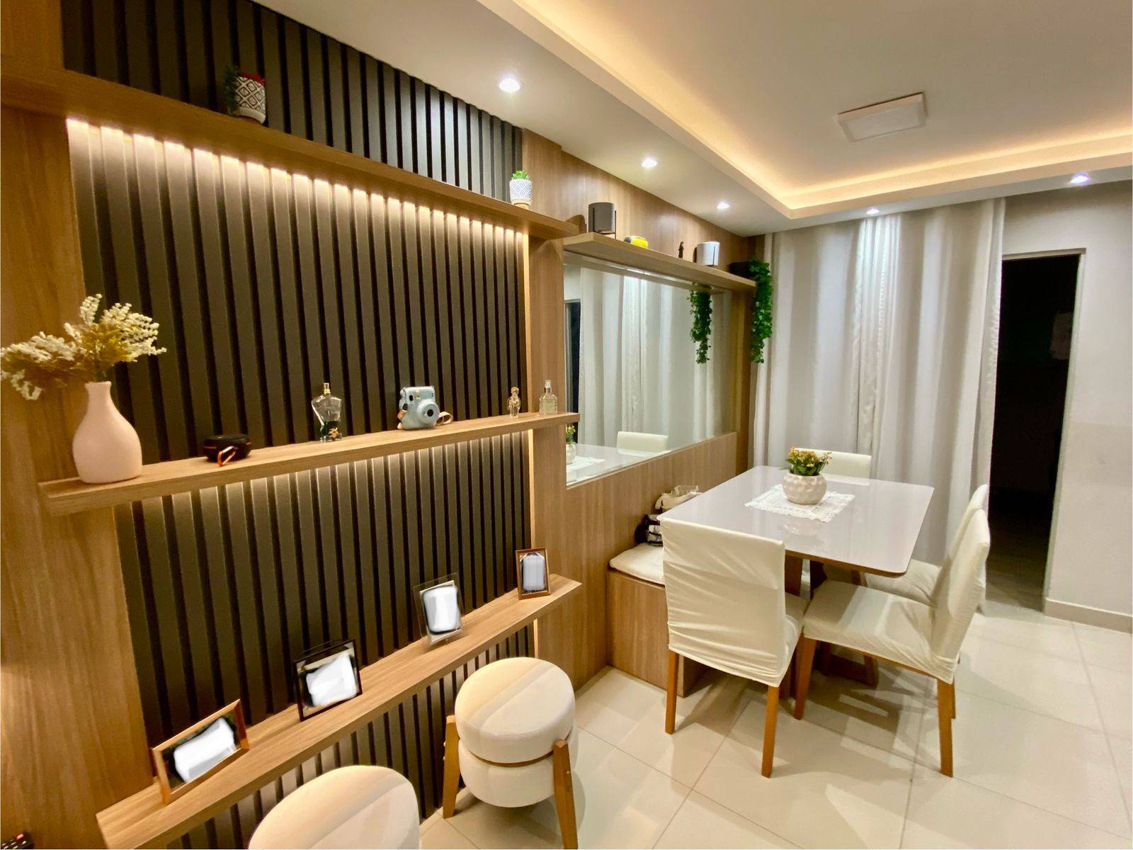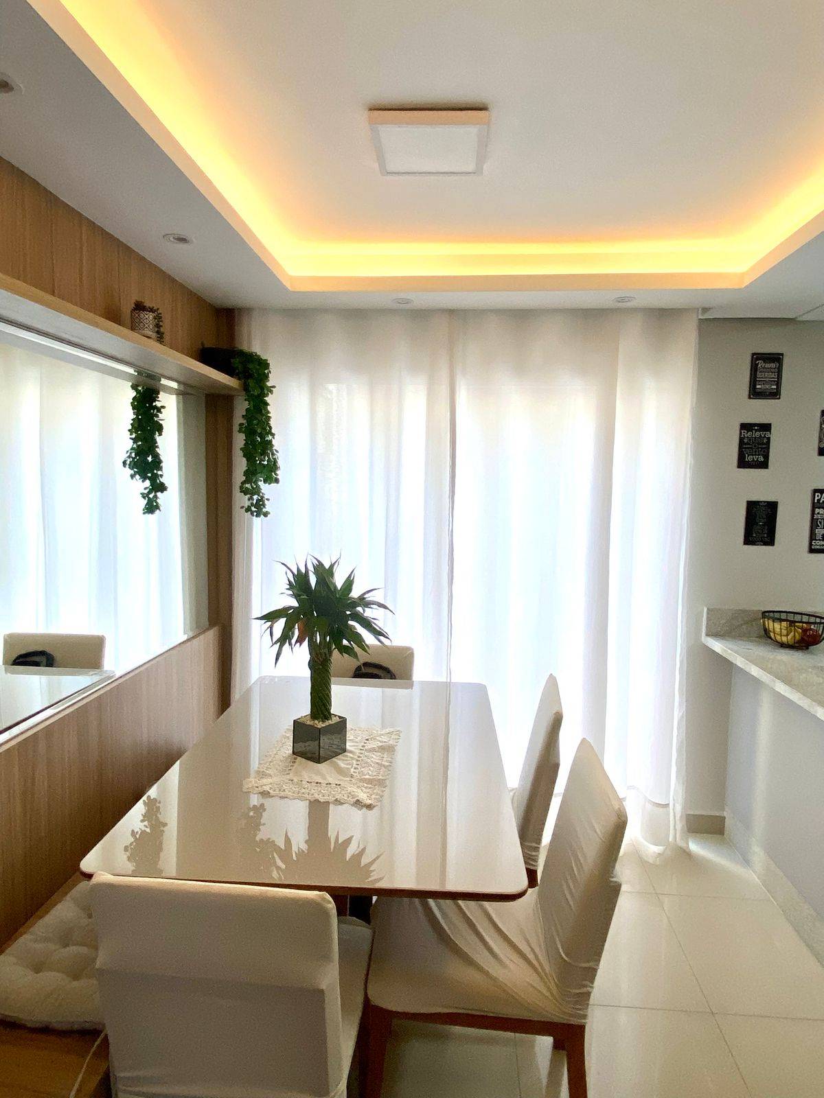 Logo ao chegar, a sensação é de um lar bem cuidado, com ambientes planejados que trazem organização, conforto e praticidade para o dia a dia. A sala com gesso rebaixado e iluminação em LED cria um ambiente elegante e acolhedor, perfeito tanto para momentos tranquilos quanto para receber visitas.